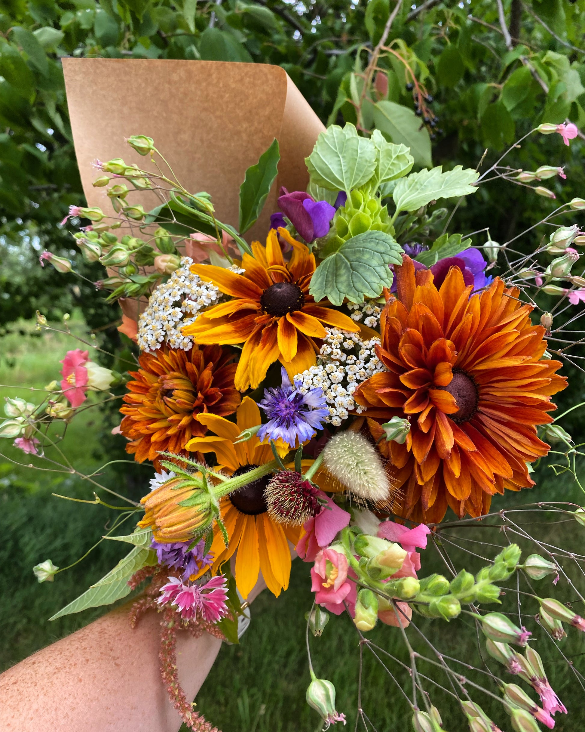 A small bouquet includes 15-20 stems, and would fill a smaller vessel such as a mason jar. All blooms are grown here on our farm, and reflect what is seasonally available. We are happy to accommodate requests where we can - please just send a note! For an idea of what is in bloom during a given season, please check our instagram or facebook pages.